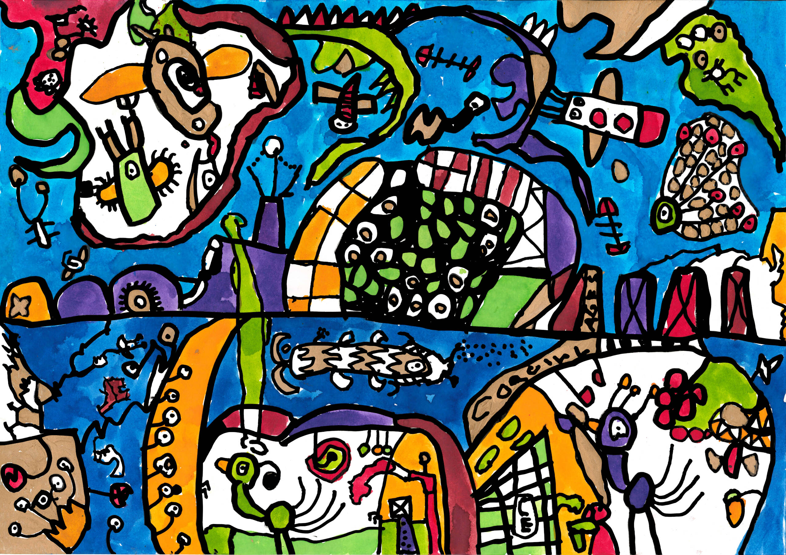Mosaïque des dessins réalisés en 2016 par CC. Ensemble 02