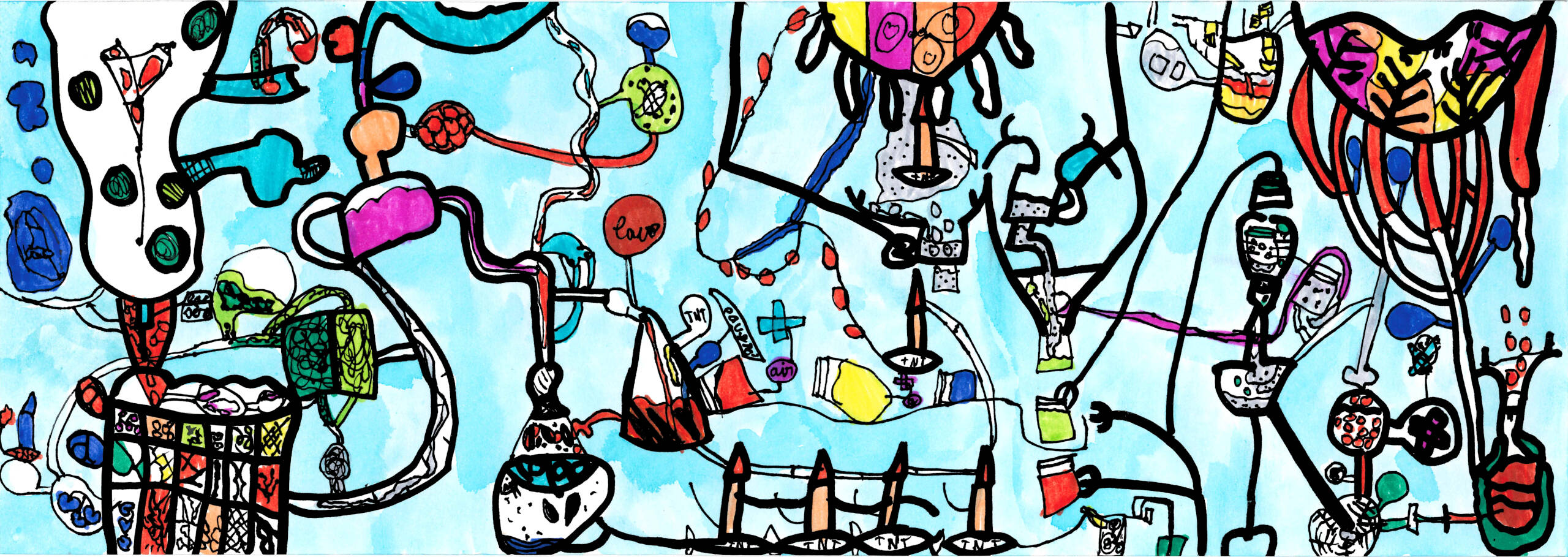 Mosaïque des dessins réalisés en 2016 par PC. Ensemble 01